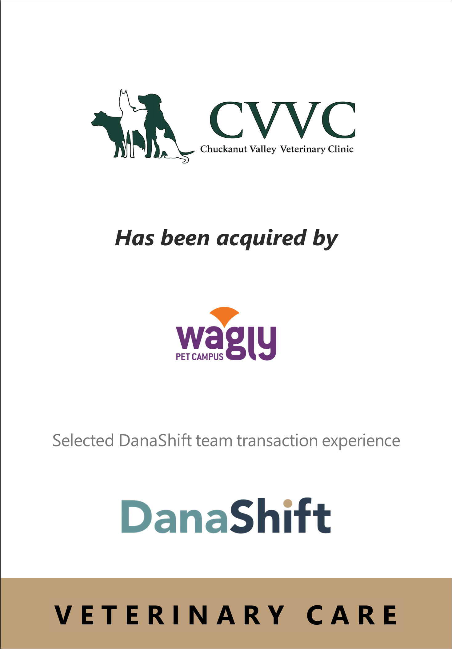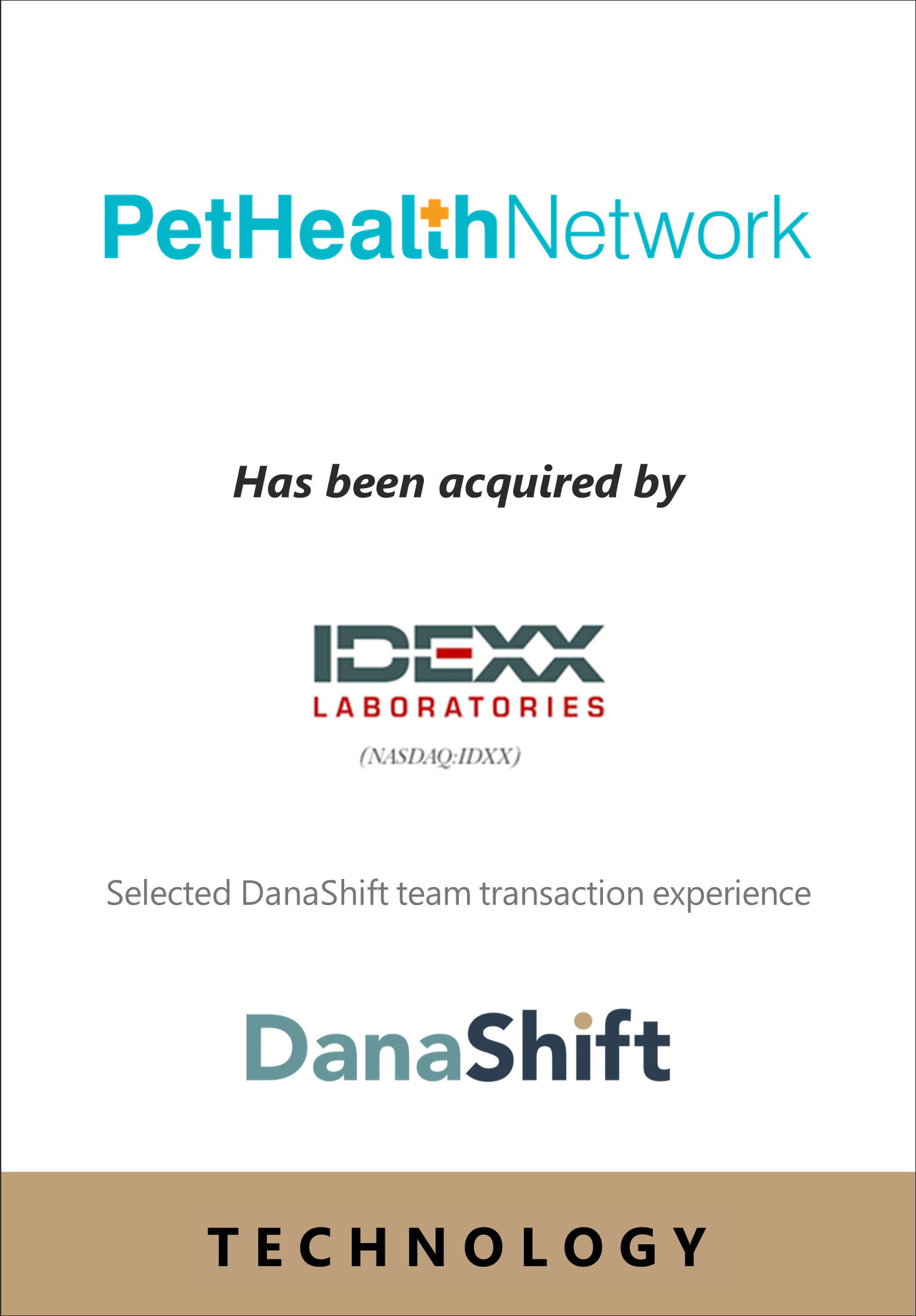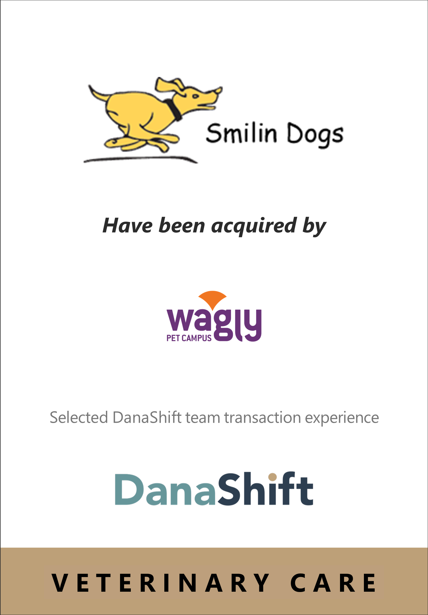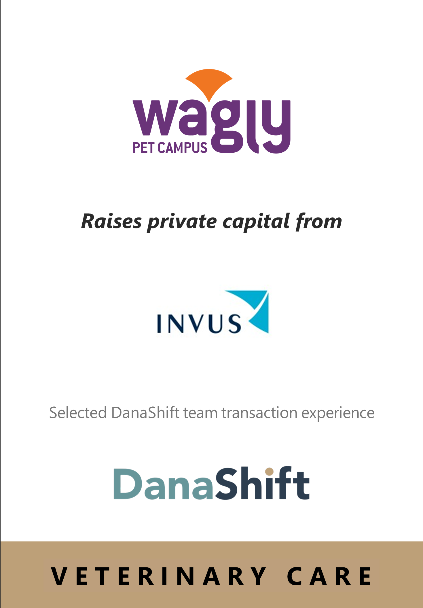 DanaShift advises founders, boards, and investors across the animal health and pet care ecosystem—including veterinary services, therapeutics, diagnostics, and pet technology—on strategic transactions that shape the long-term trajectory of their businesses.